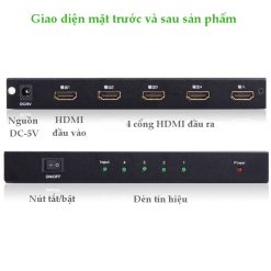- Bộ chia HDMI 4 cổng cho phép người dùng kết nối 1 nguồn phát HD duy nhất như Android TV Box, PC, Laptop, PS3,…kết nối đồng thời cùng lúc với 4 màn hình hiển thị. Cho chất lượng tín hiệu xuất ra sắc nét, ổn định.