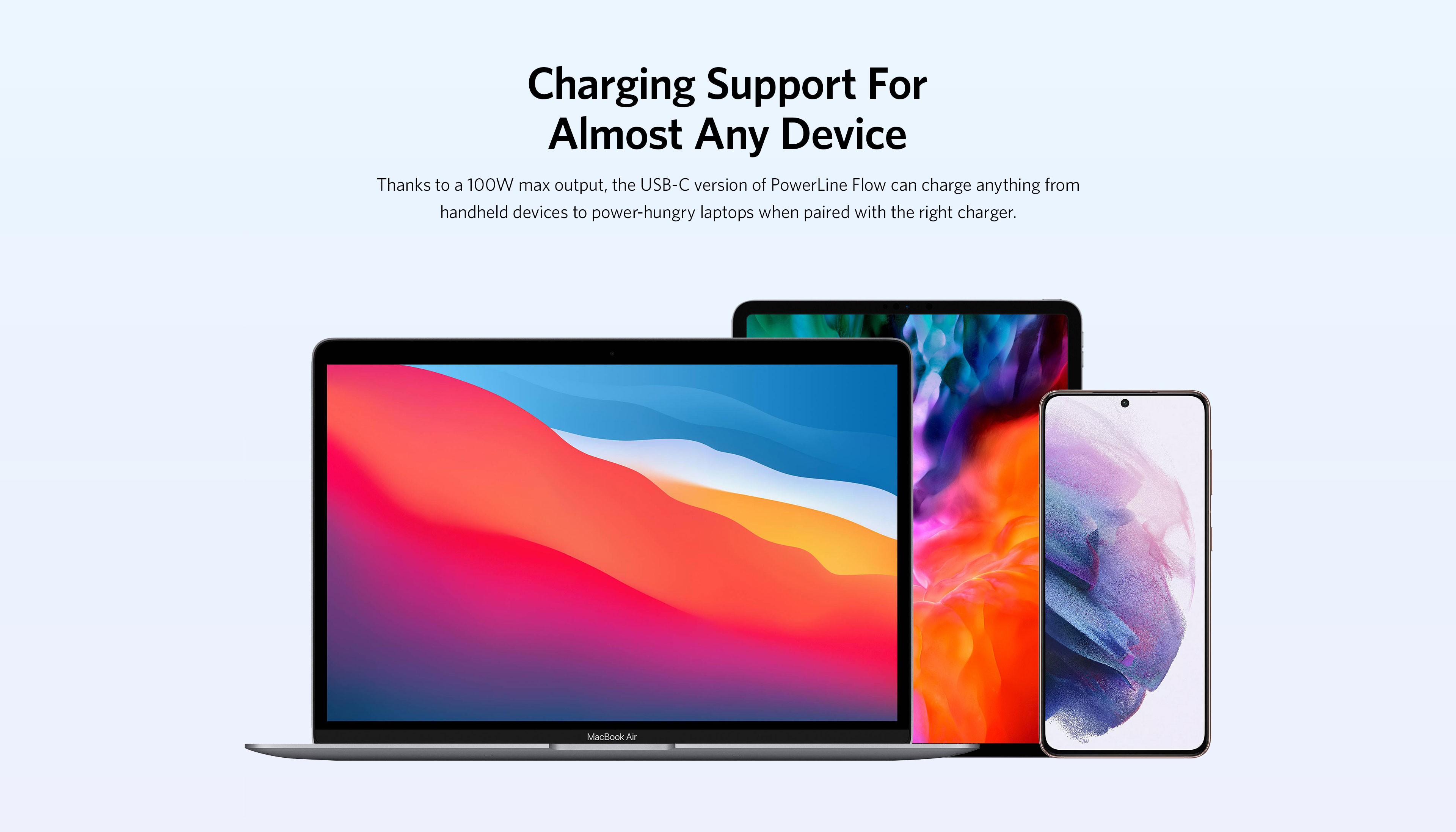 Linh hoạt phong cách của bạn: Tìm giao diện phù hợp với bạn và điện thoại của bạn. PowerLine III Flow có 4 màu tươi mới: Tím tử đinh hương, Xanh bạc hà, Trắng mây và Đen nửa đêm.