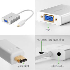 Review Dây chuyển đổi micro HDMI male to VGA female, Ugreen 40222 – dài 15cm (bạc)