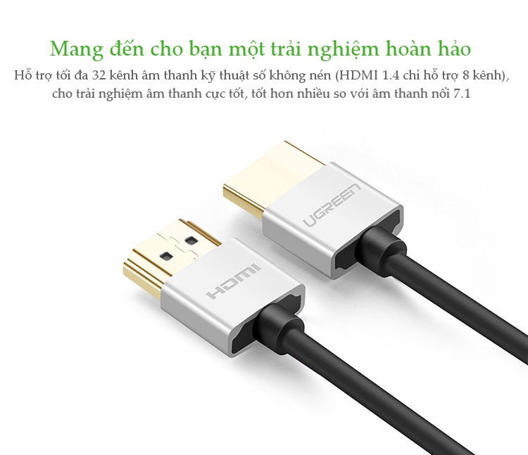Cáp HDMI chất lượng cao này hỗ trợ đầy đủ 1080P + Ethernet – Ultra HD 4k x 2k, 18Gps tốc độ truyền tải tốc độ cao, Băng thông 340MHz. với màu sắc sống động như thật. Để đáp ứng nhu cầu của các thiết bị độ nét cao hiện tại và trong tương lai, chẳng hạn như tăng độ phân giải và tốc độ khung hình cao hơn, cáp UGREEN HD117 này hỗ trợ độ phân giải lên đến 4k x 2k.