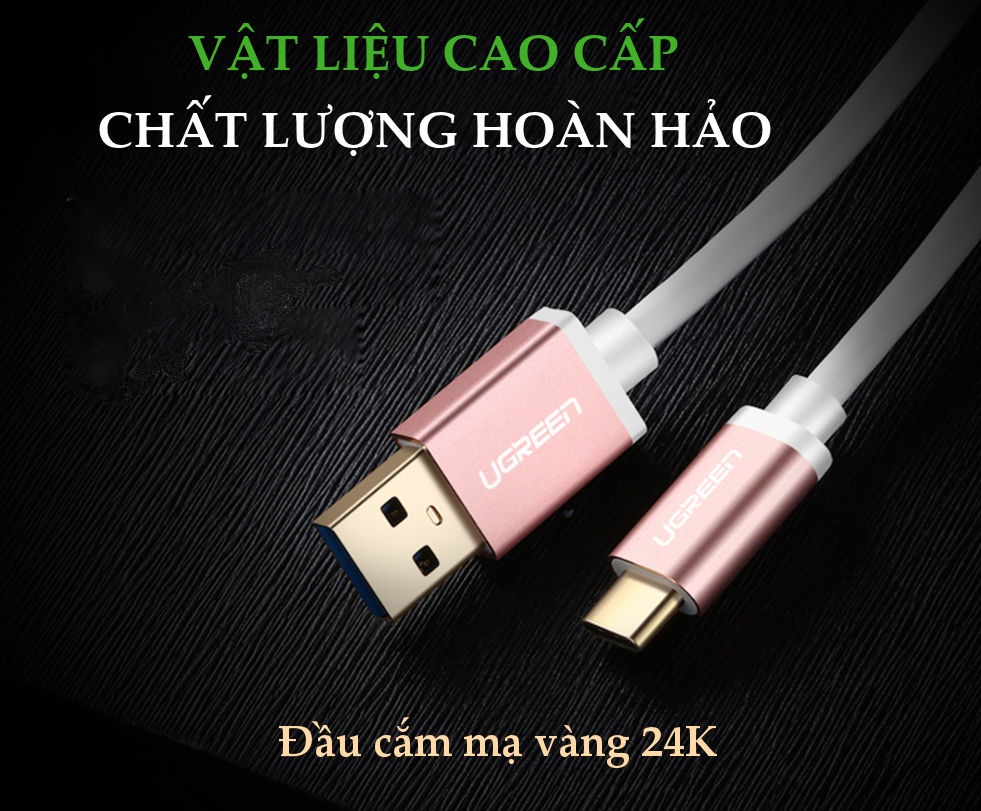 Dây USB 3.0 đầu đực sang USB type C đầu đực US187 là sản phẩmchính hãng UGREEN