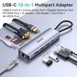 Đế cắm Type-C bộ nguồn 11 trong 1 USB30 *3 +35AV + VGA + HDMI*2 + DP + SD + TF + Gigabit RJ45 JASOZ H114 Hàng Chính Hãng – Bảo hành 18 tháng