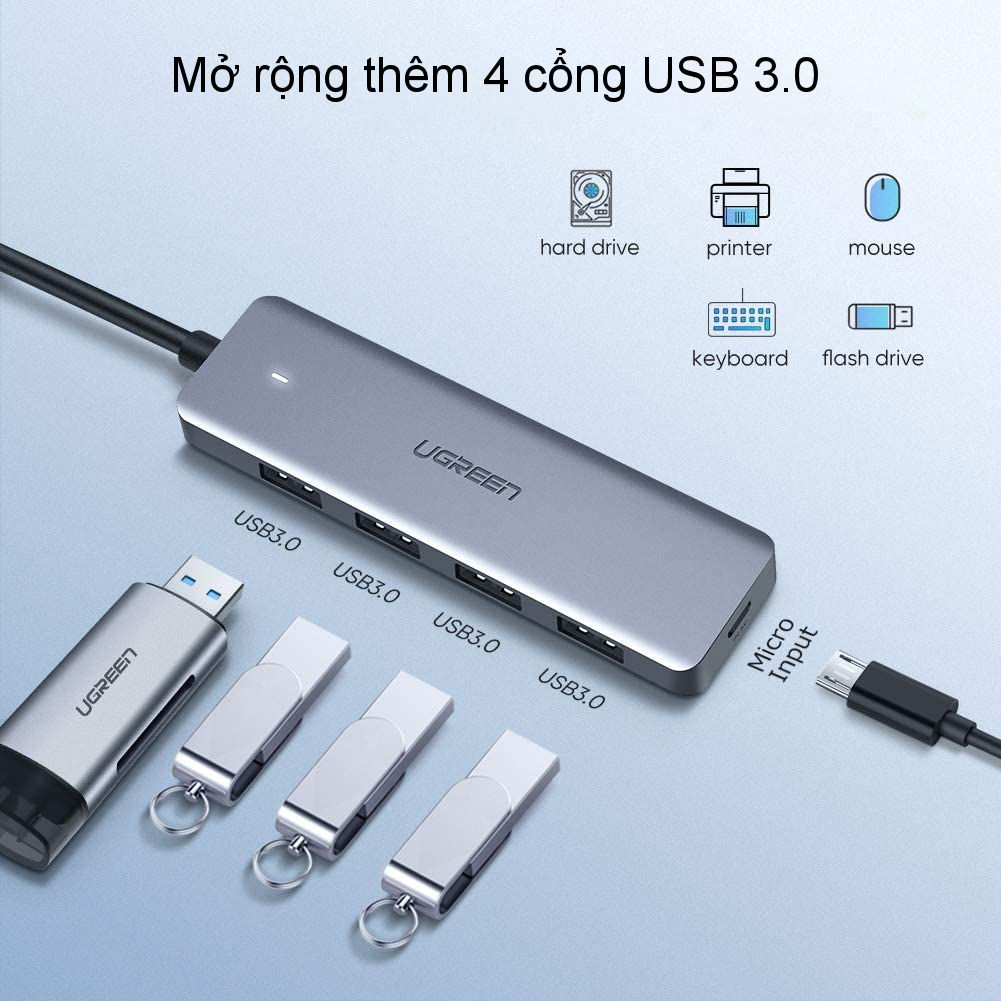 Giải pháp hoàn hảo cho bạn mở rộng kết nối đồng thời 4 thiết bị qua cổng USB 3.0 như: thẻ nhớ USB, bàn phím, đầu đọc thẻ, ổ cứng HDD/SSD…