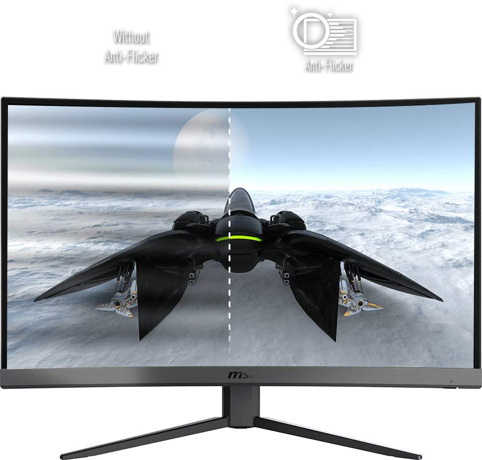 Màn hình chung thường có tốc độ nhấp nháy khoảng 200 lần mỗi giây, không thể nhận thấy bằng mắt thường, nhưng có thể gây ra mệt mỏi theo thời gian. Công nghệ chống rung MSI cung cấp trải nghiệm xem rất thoải mái bằng cách giảm lượng nhấp nháy.