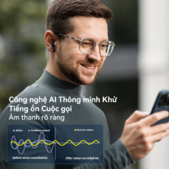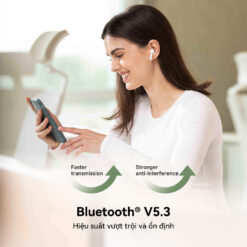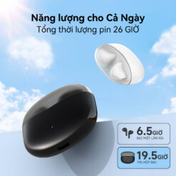 Sử dụng cổng sạc Type-C thông dụng, cho khả năng sạc điện nhanh và kết nối thuận tiện, dễ dàng Sử dụng liên tục 6 giờ (tai nghe) và 18 giờ (hộp sạc). Hỗ trợ sạc nhanh 10 phút cho 1 giờ sử dụng.