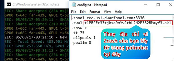 Sau khi tải về giải nén, vào thư mục vừa giải nén được chỉnh sửa lại địa chỉ ví Wallet lấy từ trang Poloniex trong file Config.txt.
