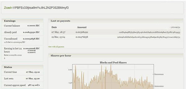 Lưu ý: Bạn chỉ cần cày được khoảng 0.005 Zec thì Pool sẽ tự động chuyển coins về ví của bạn trên trang poloniex.