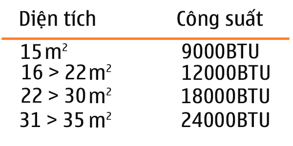 – Nếu phòng từ 12m2 đến 24m2 có thể dùng 12.000 BTU